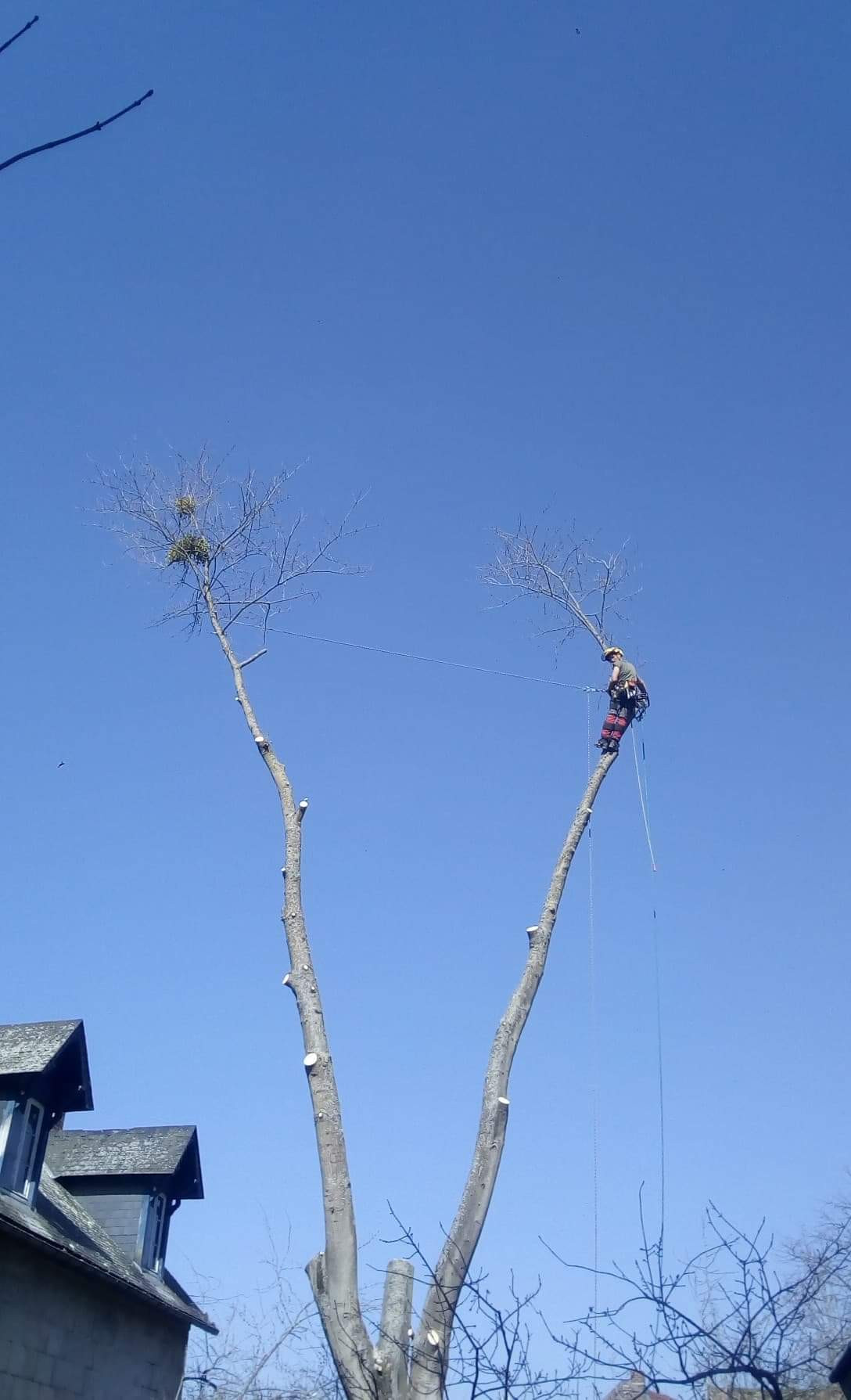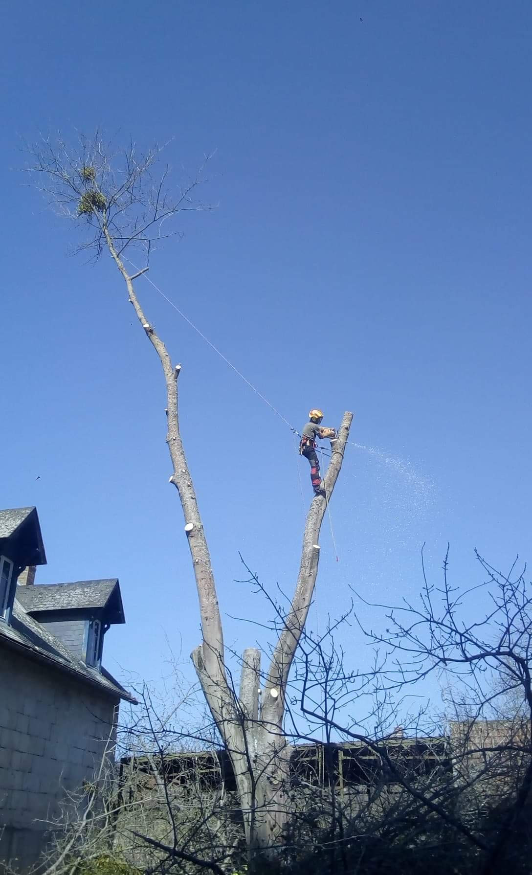 Travaux d’élagage, abattage délicat d’un érable lacinié par démontage en rétention à Forges-les-Eaux, Seine Maritime (76). N’hésitez pas à contacter Etienne Longeaud pour vos travaux d’élagage et d’abattage.