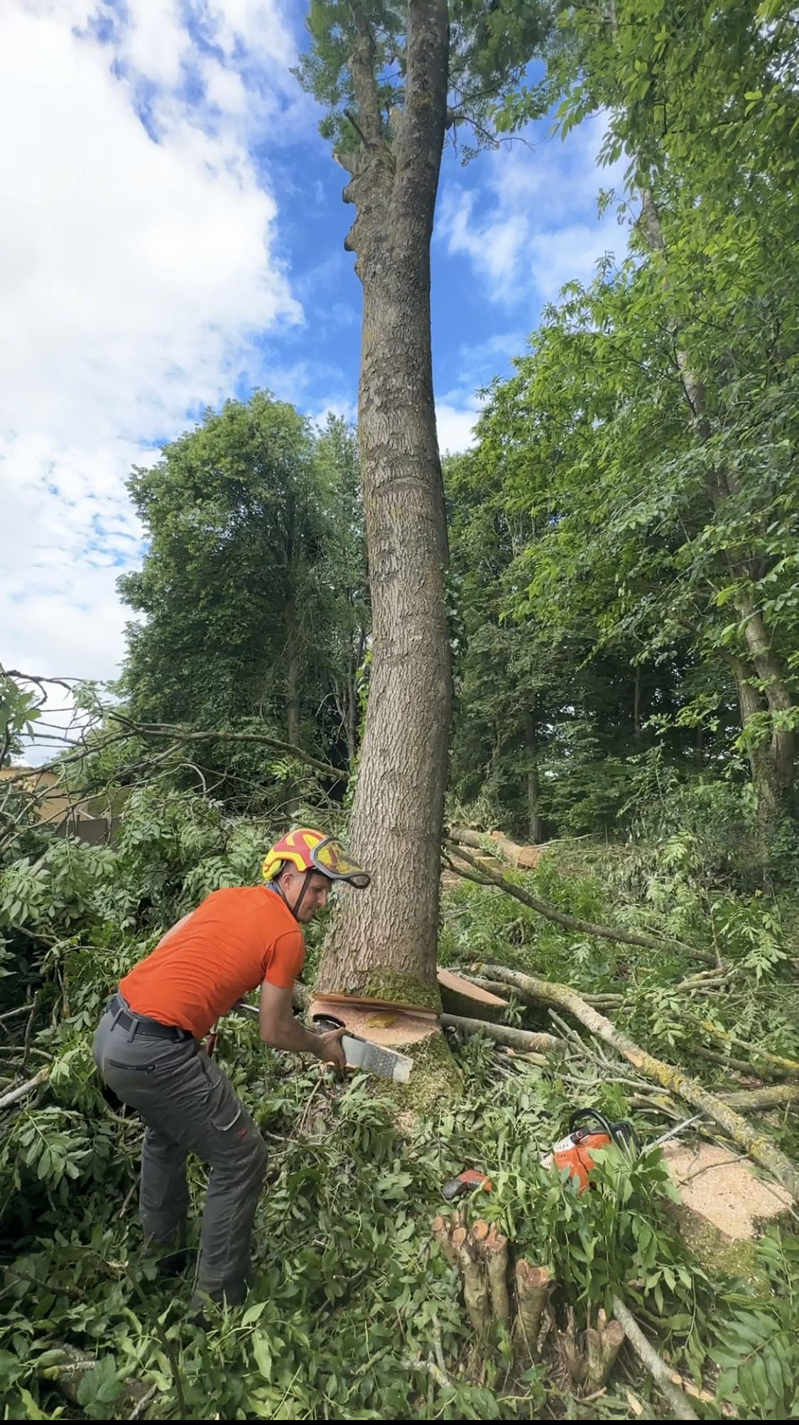 Lorsque l’environnement pouvait nous permettre de réaliser un abattage dirigé, les arbres ont étaient abattus de manières précises, sans dégâts et en sécurité.