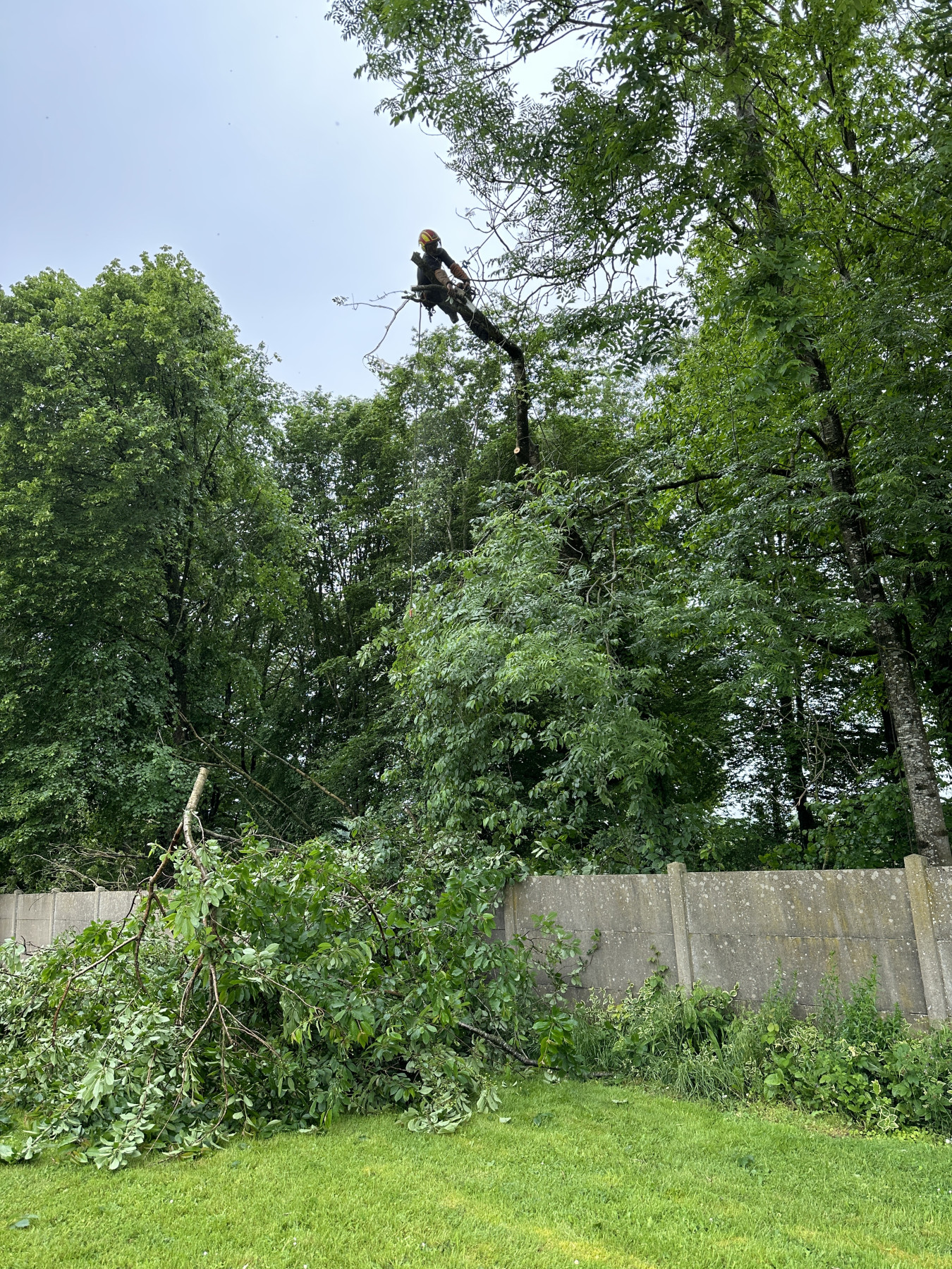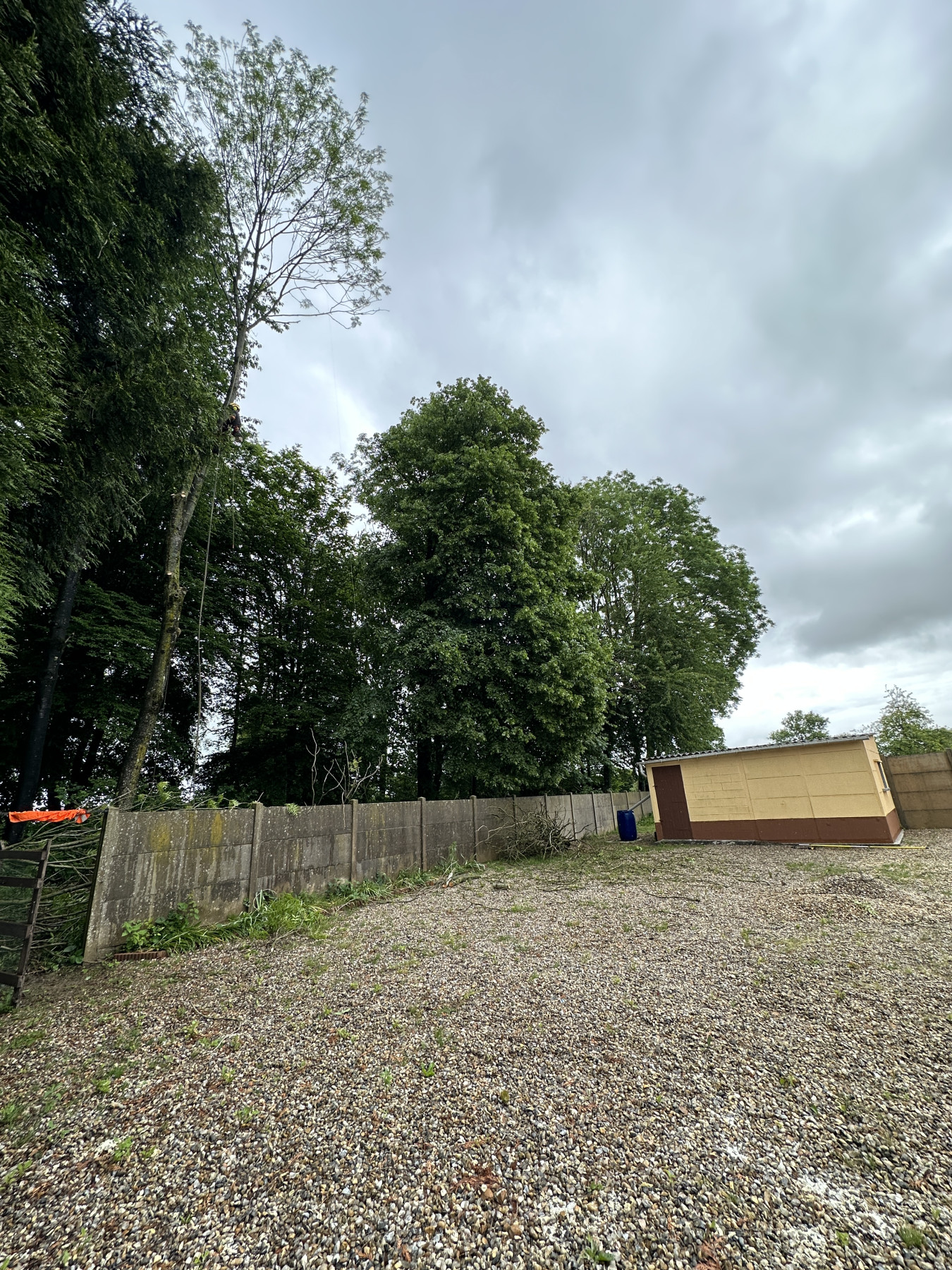 L’abattage des arbres à été réalisés en rétention dans le but de protéger la clôture du client d’une éventuelle chute de branches.