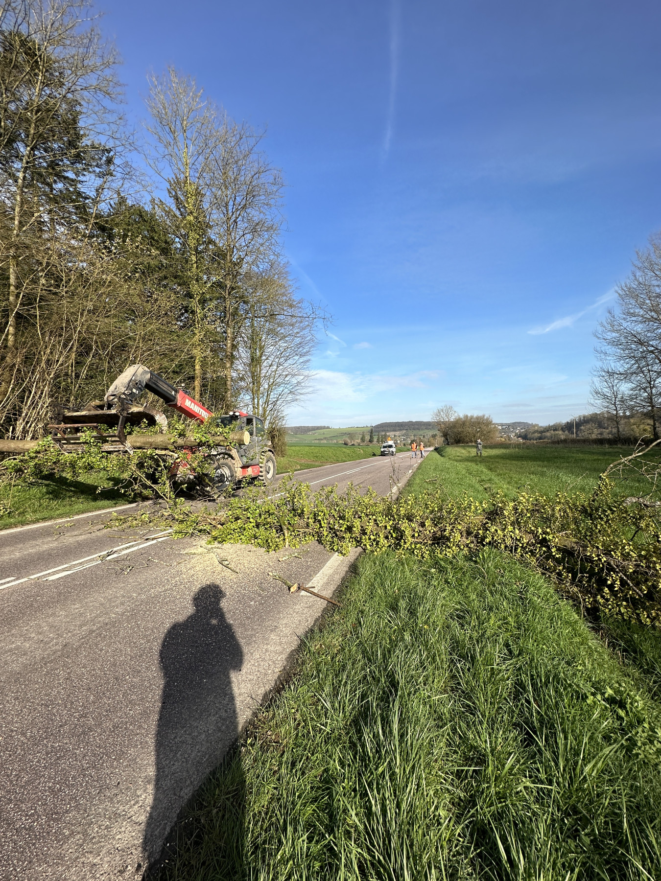 Travaux d’abattage réalisés en bord de route départementale pour la mise en sécurité des usagers de la route avec l’aide de la DIR pour une réalisation en toute sécurité.