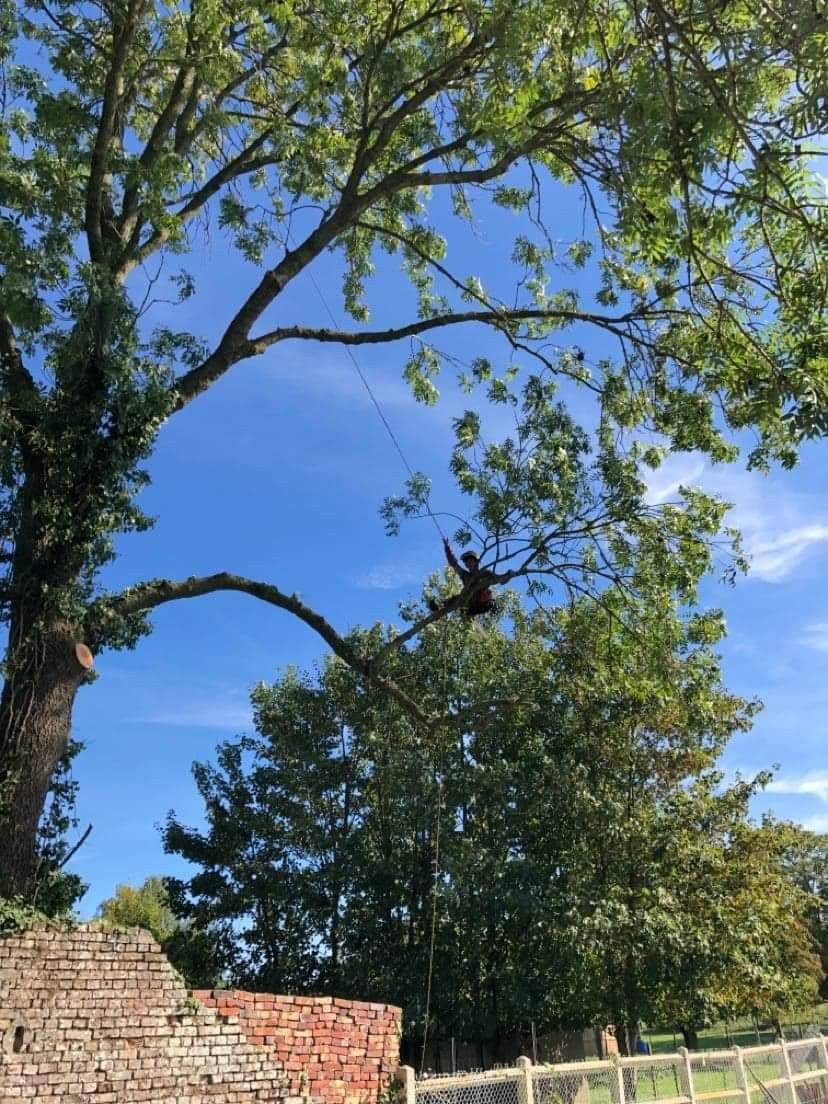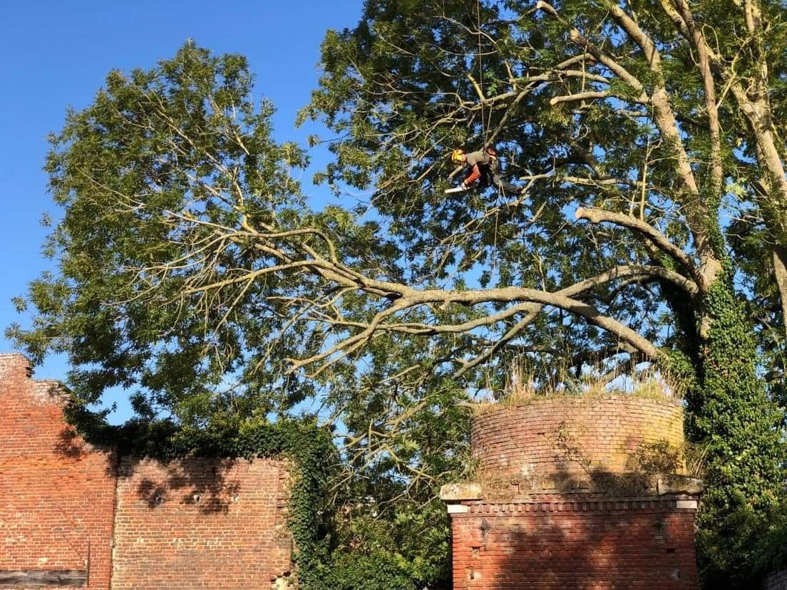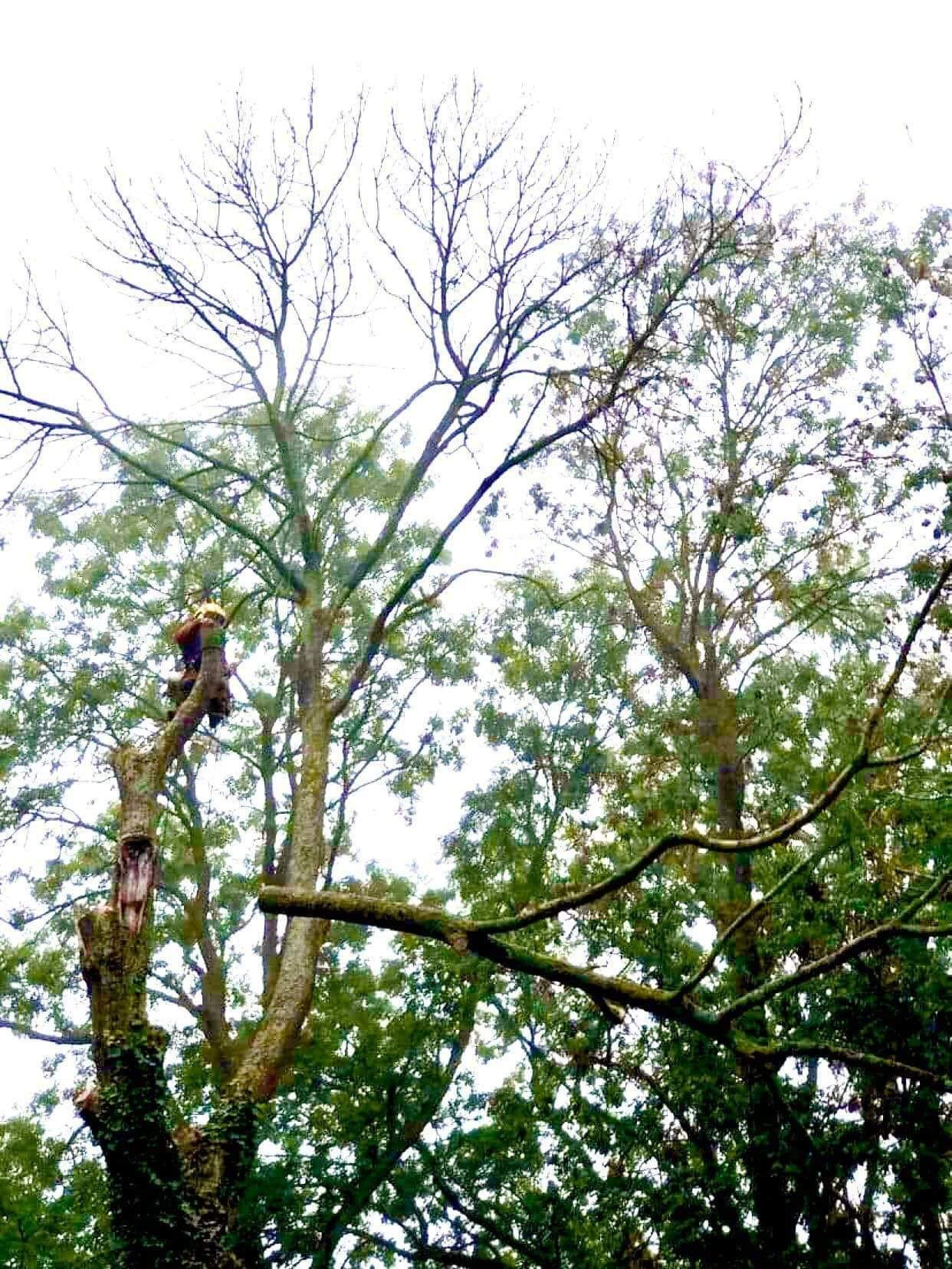 Abattage par démontage de quatres frênes atteints par la chalarose.