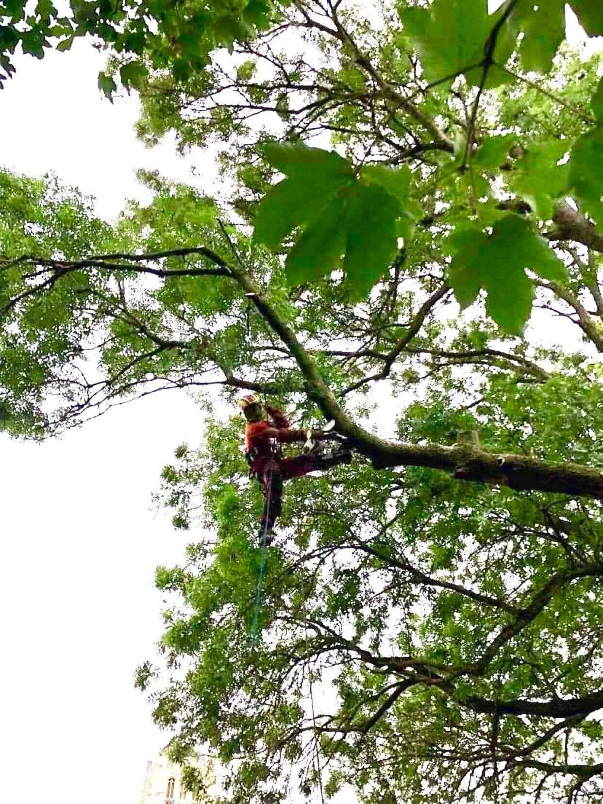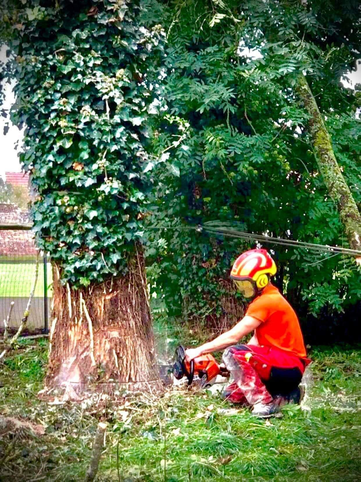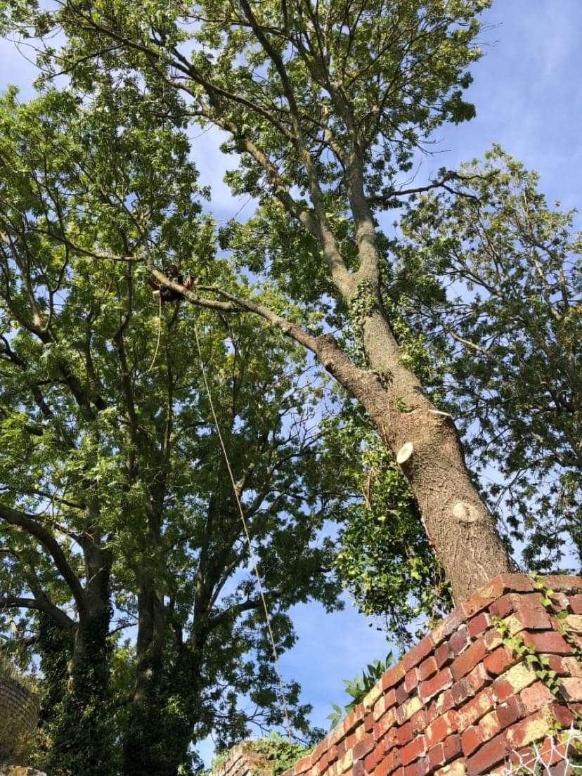 Abattage par démontage de quatres frênes atteints par la chalarose.