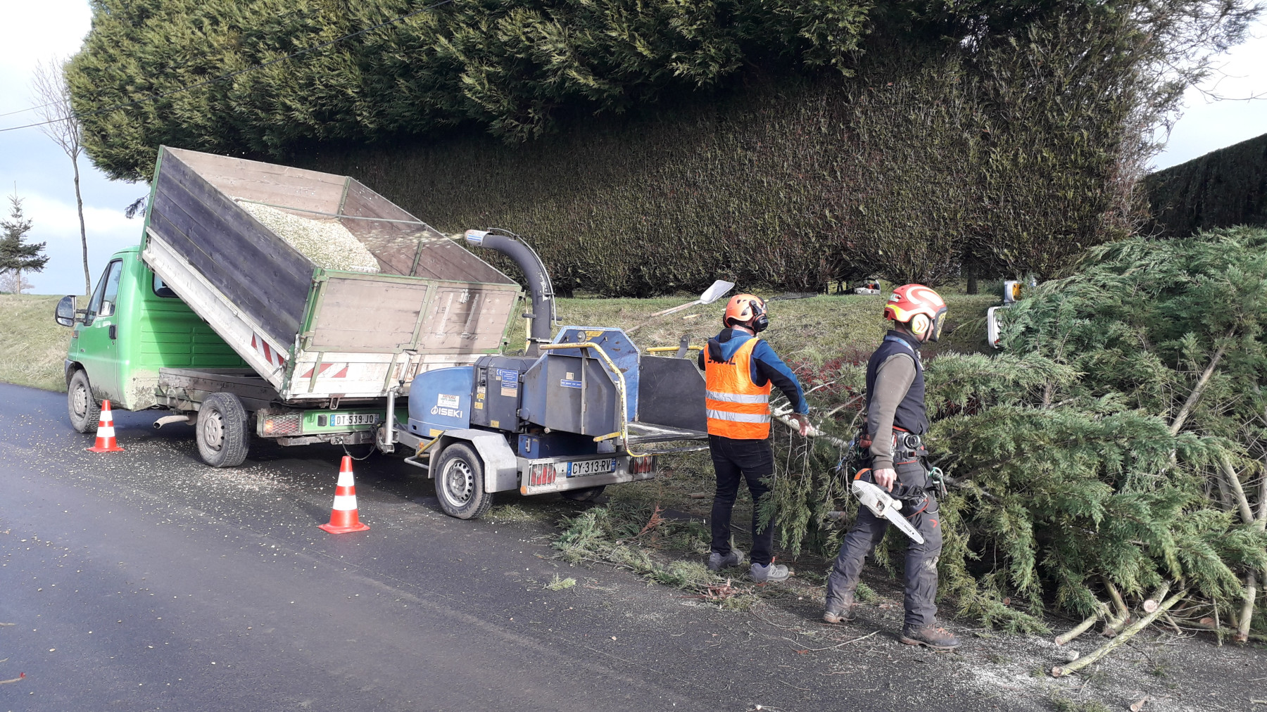Les branches ont étaient broyées et le bois evacué, l’ensemble des déchets et rémanents ont été ramasser dans le cadre des travaux de finition.