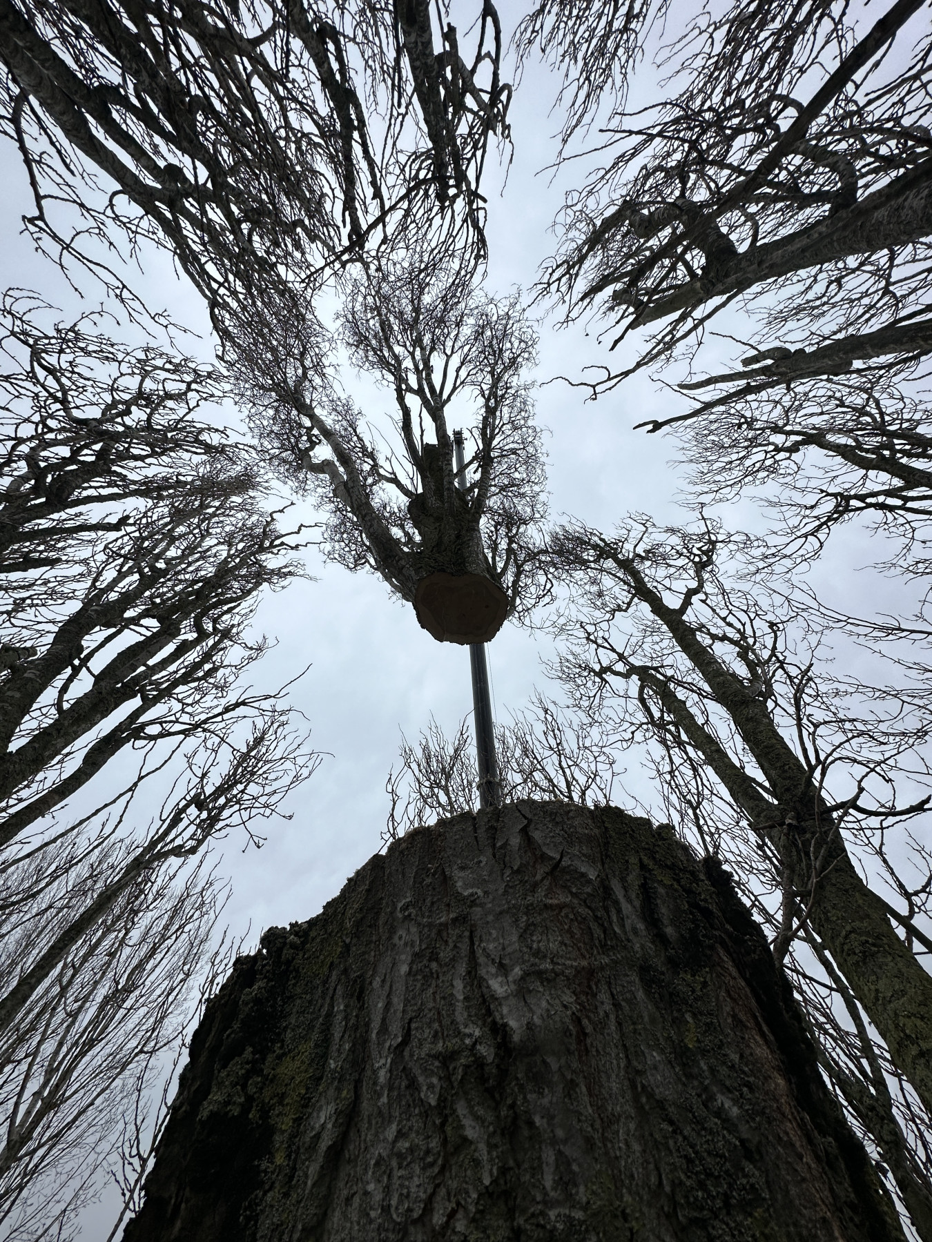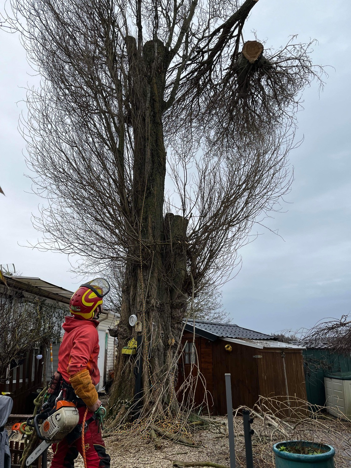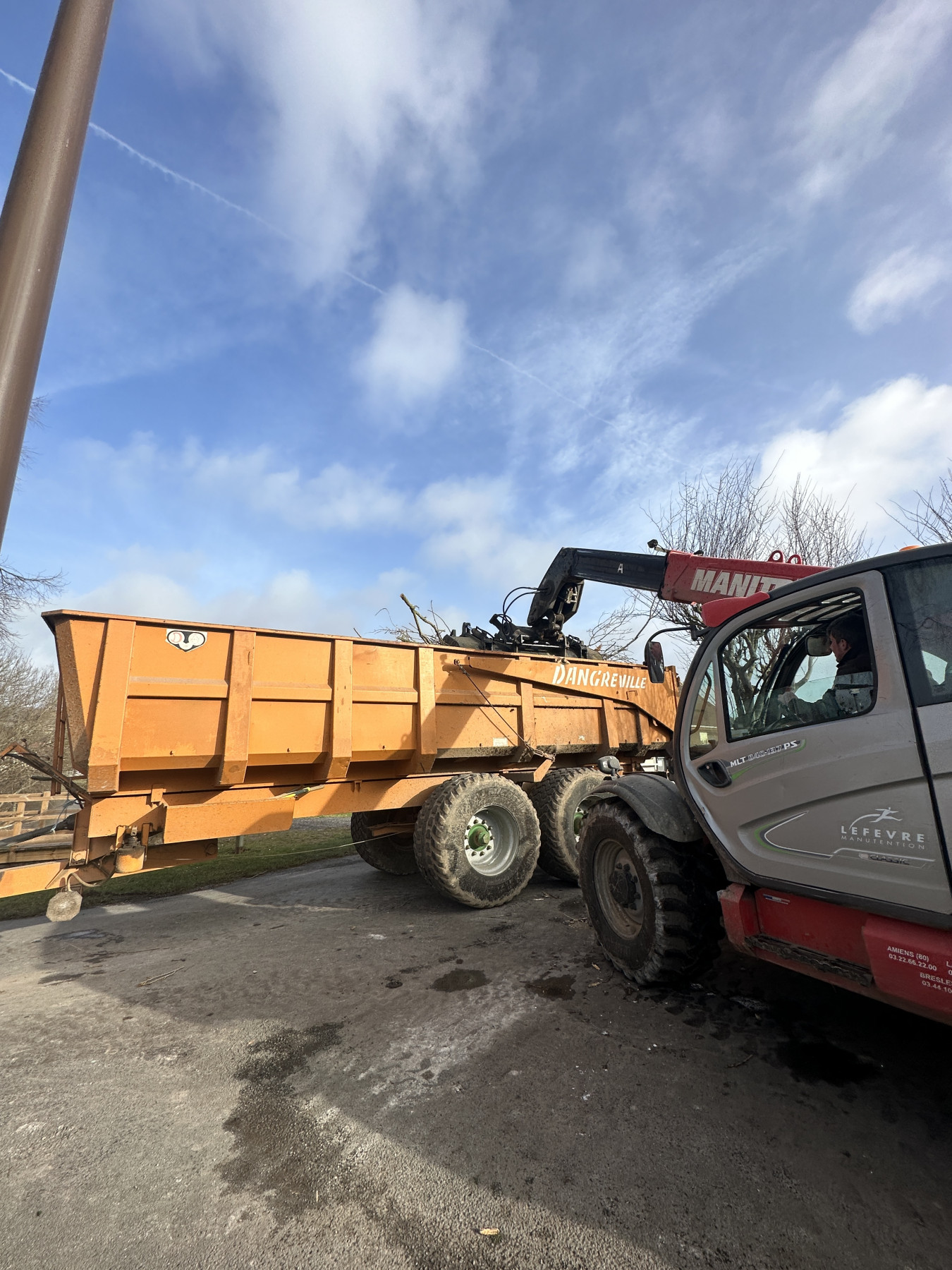 Suppression de deux peupliers d'Italie d'environ 30 mètres de hauteur pour un total de plus de 20 tonnes de bois evacué à l'aide de matériel agricole.