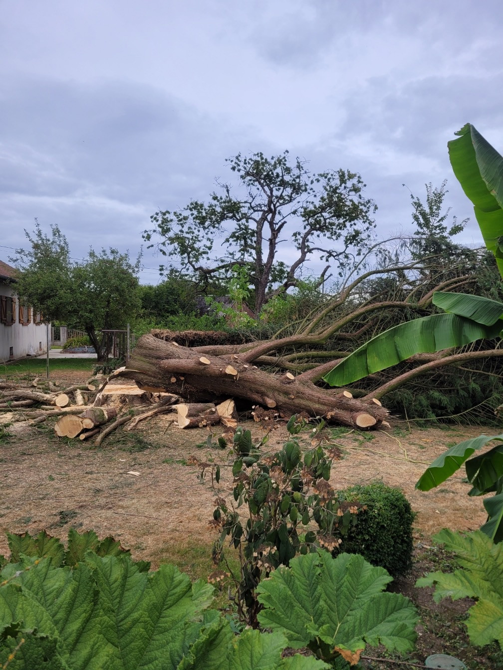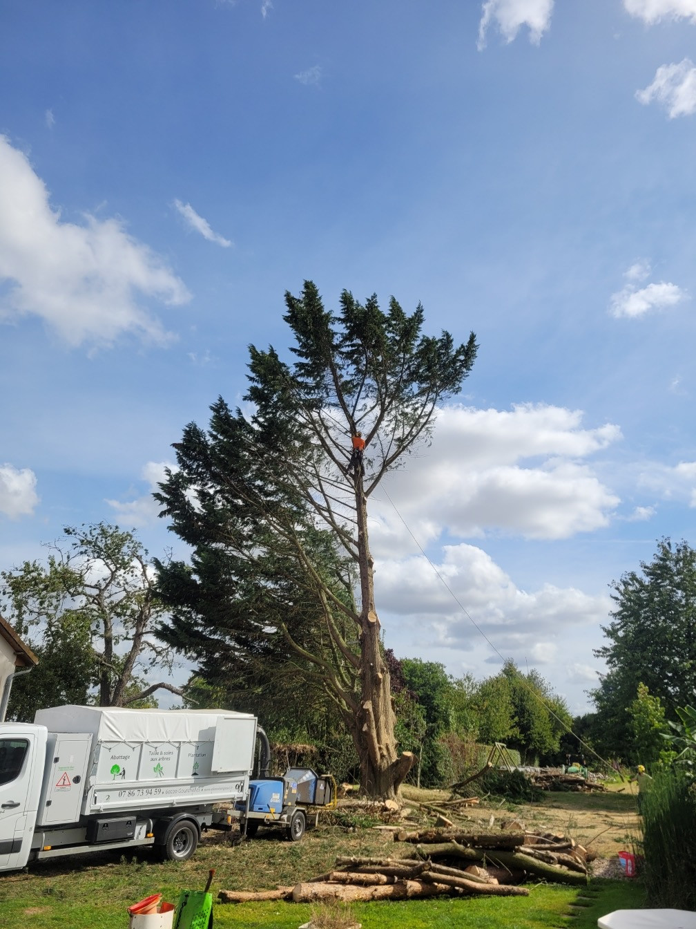 L'arbre a été abattu en sécurité, a l'aide de matériel adapté, les branches on été broyées et évacuées ainsi que le bois.