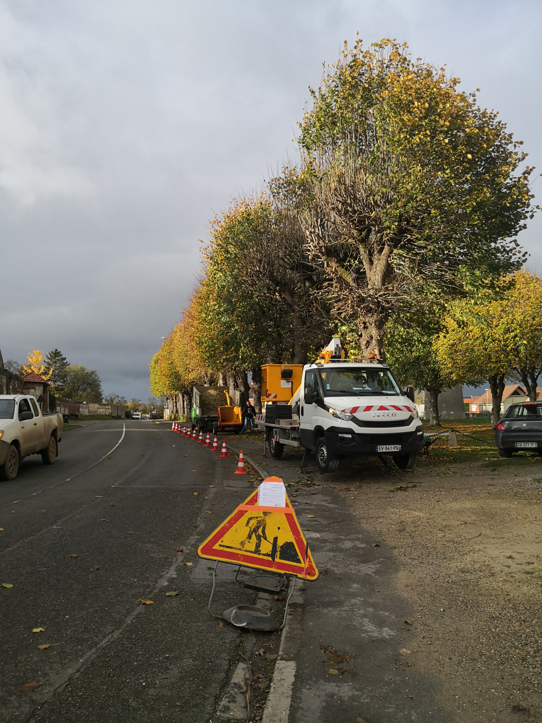 Élagage, taille sous forme harchitecturée (rideau) de deux allée de tilleuls à Saint Just en Chaussée, Oise (60) , broyage et évacuation des déchets. N’hésitez pas à contacter Etienne Longeaud pour tailler vos arbres.